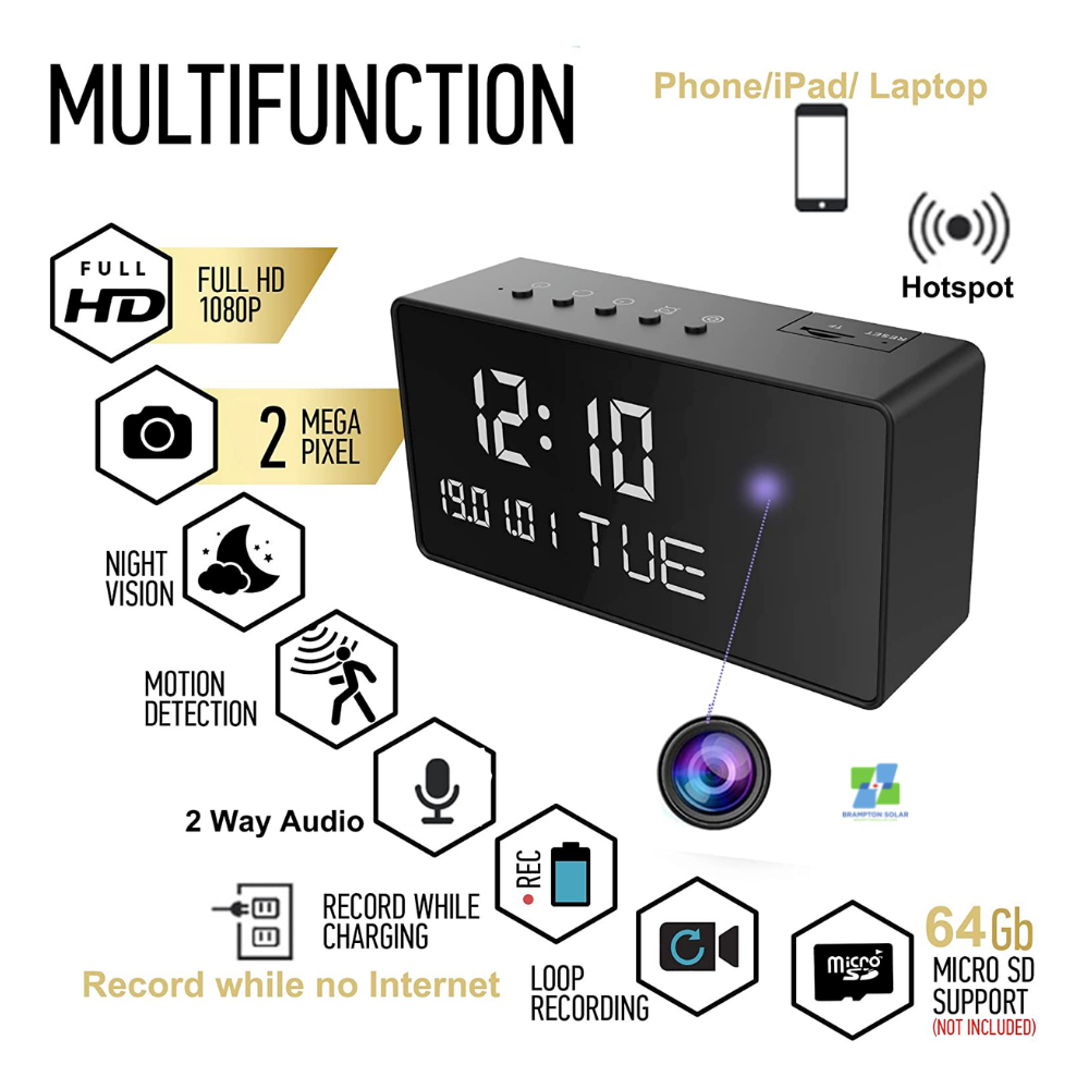 [Concealed and Functional Design]Hidden Spy Camera, looks like a normal clock, upgrade a dual alarm clock function. The lens of spy cam is hidden under the glossy screen thus nobody will notice it. it can be carried to living room, bedroom, business, nanny, baby's room Monitoring.comes with excellent 5M infrared night vision, you can see any details and surface clearly even in dark environment