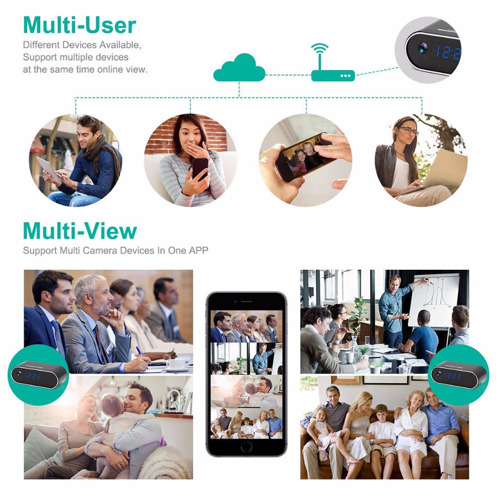 Special Design Hidden Camera in the clock with 140° Wide Angle Lens for Home Security: This full HD 1080P WiFi camera clock is concealed in what looks like a normal clock. No one will ever suspect that this clock has a recording camera. Perfect for pet / baby monitoring, nanny cam, business monitoring, security, vacation home monitoring.