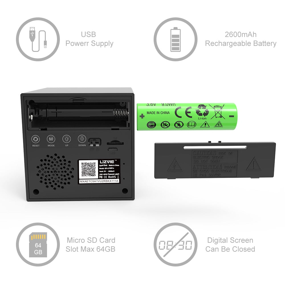 Invisible Lens WiFi Camera Hidden Lens Clock Camera 1080P Full HD Security Mini Camera Invisible IR LED + Bluetooth Speaker.