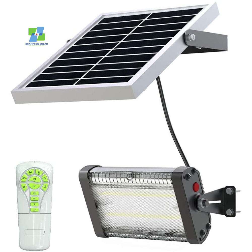 The solar light has a separate solar panel on the unit to draw energy from the sun. The solar panel also contains a sensor that activates the light when it is sufficiently dark. This unit comes with a remote control so that you can select your desired mode, brightness, and timer options. After a full charge, this solar light can be activated in increments of 10% brightness for a full 12 hours. If not fully charged, it has a built-in feature that adjusts to the maximum possible brightness for up to 12 hours. It can also be set on timer mode for 3 hours, or 5-hour sequences.