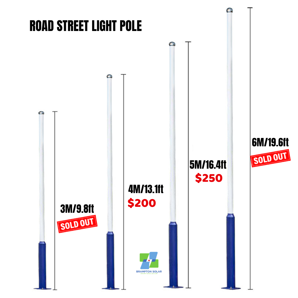 3m, 4m, 5m, 6m, Round Sectional Galvanized Steel Lamp Post Light Pole. 8” Concrete Mounting bolts are included x4. See prices in the second picture.