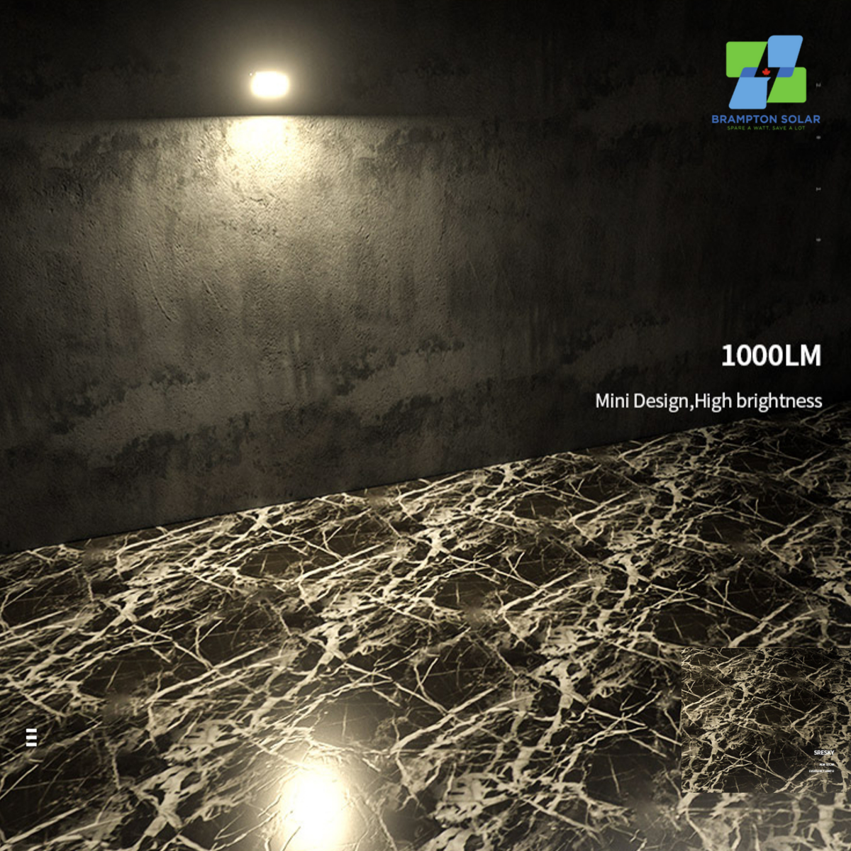 Brampton Solar 10W Solar Security Light. 1000LM. Mini Design High Brightness.