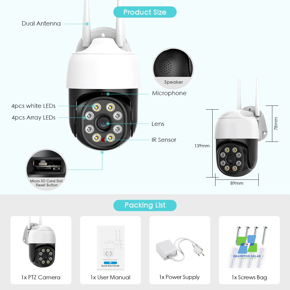 Outdoor PTZ Wifi IP 1080P Auto Tracking Security Camera.