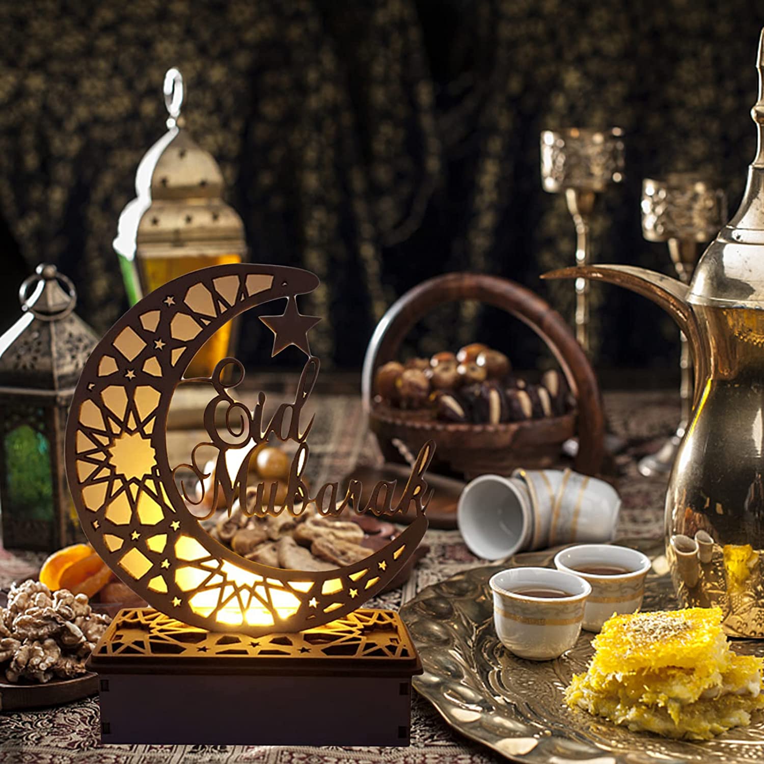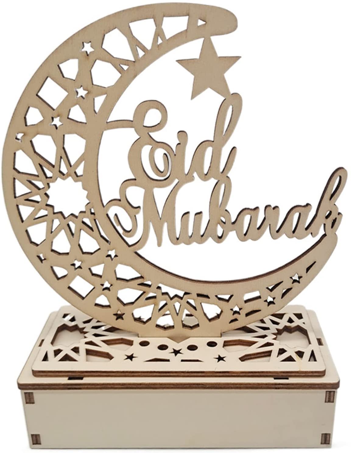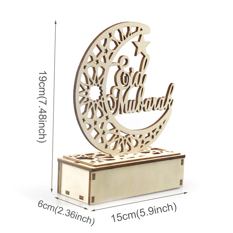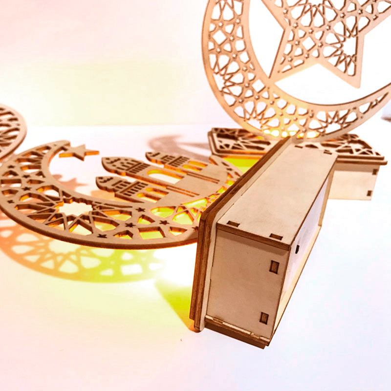 High-quality Material. Using an environmentally friendly solid wood board, the LED Wooden Ramadan Lamp has a stable structure and smooth surface.