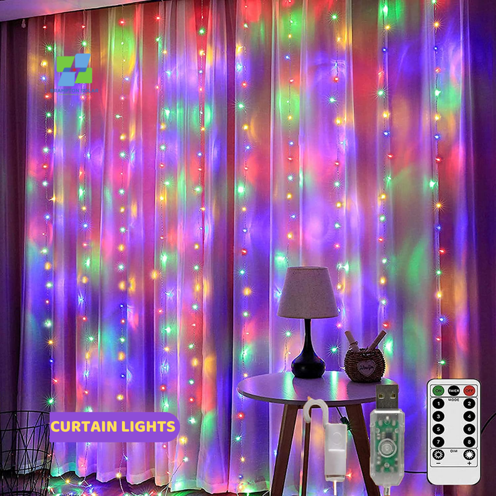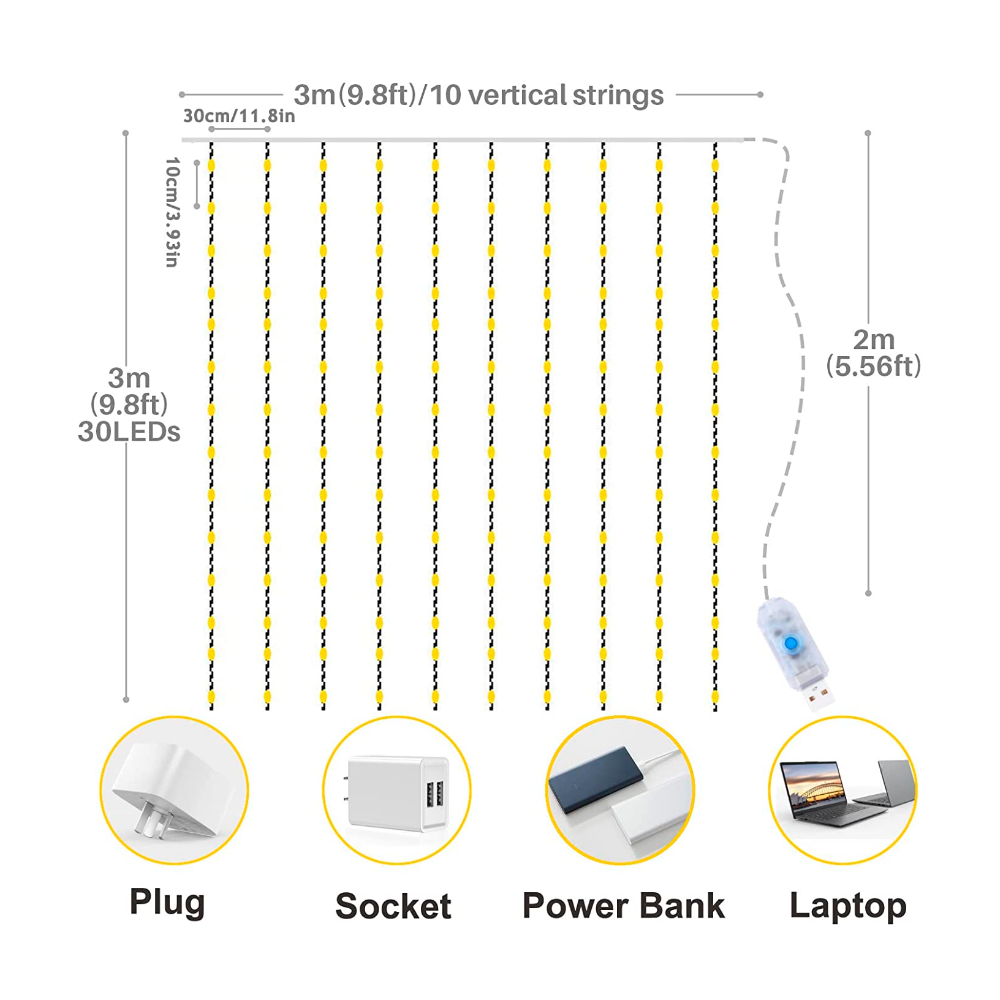 ✨ 【USB Powered Curtain Lights】3x3 meters (9.84 Feet) with 300 LEDs distributed over 10 Strings; With USB Power supply, compatible with USB Port, Power Bank, Computer, simply to use the string lights anywhere you need, for bedroom, teepee, gardens, yard, wedding, party, gazebo and more.